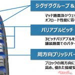 今回発売される「オープンカントリー785」は1983年に発売された4商品のうちの1つを復刻したモデルで、タイヤのトレッドパターンは当時のデザインをそのまま再現し、アウトドアなどのアクティブなシーンにおける、舗装されていない凹凸路面や泥濘路面でも走行可能なトラクション性能を有している。