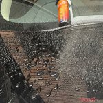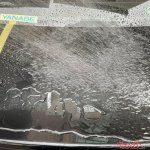 というのは、撥水タイプのガラス系コーティング剤は、洗車して施工し、水はじきをみると、驚くほど水をはじいて、その気持ちよさが半端じゃないほどだったのだが、施工後雨が降ったり、晴れたりと3週間ほど経ち、何気なく塗装面を見ていると、少しウオータースポット(雨ジミ)ができた箇所があったからだ。