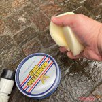 もう5年ぶりだろうか、固形ワックスを使うのは。最近は、シャンプー洗車した後、ボディに水が残っている状態で「シュッ!シュッツ!」とスプレーし、拭き上げる簡易ボディコーティング剤は、早くて簡単に済ませることができるので、最近はこればかり使っている。