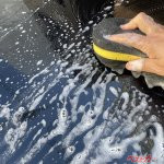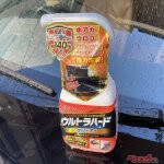 よく落ちるなあと感心していたものの、よく見るとルーフとトランクに頑固な汚れが落ちきれていない部分があったので、今度は簡易ボディコーティングの下地処理に欠かせない存在となっているウルトラハードクリーナーの出番だ。さすがウルトラハードクリーナー、今回もしっかり汚れが取れたので気持ちいい。
