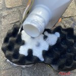 最初はいつものようにバケツに水を入れて薄めた状態で使った。薄めた状態でもよく落ちたが、さすがになかなか落ちない頑固な部分があったので原液を少しスポンジに付けて洗ってみた。