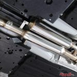 センターパイプからの交換となる「A-RM+c」。純正マフラーよりも口径が大きくなったパイプとストレート構造で排気効率を向上。センターのチャンバー手前にはレゾネーターを設けており、減速時のアクセルオフで発生する音も抑えている