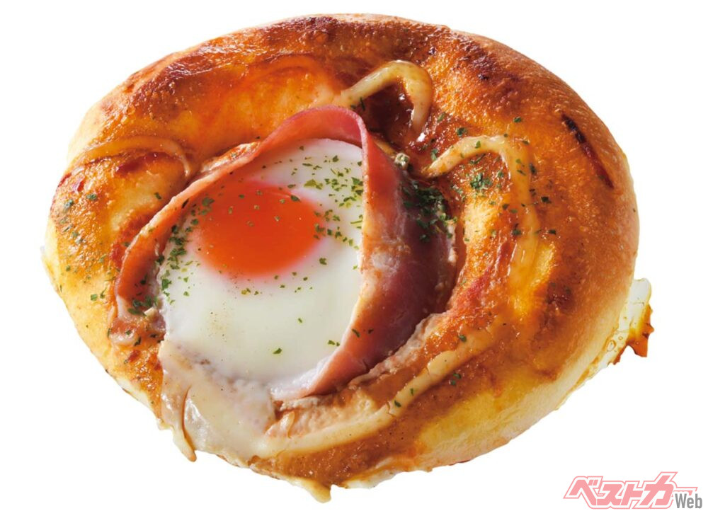 【コレも食べて!お店のおすすめパン】ベーコンエッグ 200円埼玉・田中農場の卵を使った目玉焼きの周りをベーコンがぐるりと囲む。ソースとマヨネーズでお好み焼きのような味がすれば、ケチャップとベーコンでピザっぽさもある。和洋折衷だ