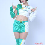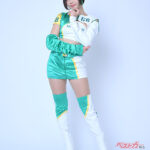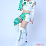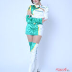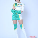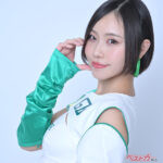レースクイーン5年目のシーズンを終えた“みおち”。白地に緑の爽やかなコスチュームがとってもステキだっ!