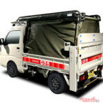 災害ボランティアの経験を活かし、ソーラーパネル、ポータブル電源、高圧洗浄などを装備したほか、オリジナルリフト、ハードカーゴ製キャリア、オリジナル幌、防災道具一式を装備する。
