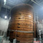 まずはエレベーターで地下3Fまで下った。するといきなり、巨大な樽が目の前に出現。しかも2機もある。樽の素材はカナダ産のヒバで、重さはひとつあたり35t。1985年からずっとそのままの状態だという。なぜ、自動車会社の本社ビルに樽があるのだろうか。