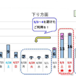 下り線は5月3日(土)5時と翌4日(日)7時の中央道相模湖IC先頭の45kmがピーク!