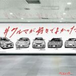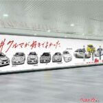 この新聞企画の熱量そのままに、6月9日からは渋谷駅に「クルマ愛宣言広告」が登場する。場所は東急田園都市線・渋谷駅B1F道玄坂ハッピーボードA。全長22メートルにわたり、スズキ・スバル・トヨタ・日産・ホンダ・マツダ・三菱の7メーカーと作中の名車たちが共演。中央には11年半ぶりとなるしげの秀一氏の描き下ろしで「プロジェクトD」が再登場。「クルマが好きでよかった」のキャッチコピーが、時代を超えて響く。