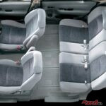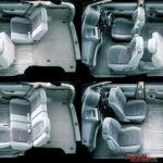 各シートについては2800mmのロングホイールベースをベースに、フロントシートは前方のホイールハウスに沿って上前方へ、リアシートは後方のホイールハウスに沿って上後方へと、それぞれ大胆に配置されている。こうした配置によって前後席間の距離を大幅に確保し、全乗員に広々とした居住空間が提供できる。