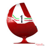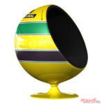 お次はA・セナとN・ラウダが現役当時のヘルメットのカラーリングを再現したボールチェア。1960年代にスカンジナビアンデザインで一世を風靡したボールチェアだけにオシャレ!