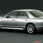 フロントまわりはBCNR33型GT-Rをベースにしながら、より落ち着きと品格を重視した造形へとリファイン。開口部形状やリップ部の厚みを最適化することで冷却効率と空力性能を両立し、2ドアより控えめなデザインとして、セダンとしての落ち着きを演出した。力強さを維持しながらも、過度なアグレッシブさを抑えて「大人のGT-R」というテーマを体現している。