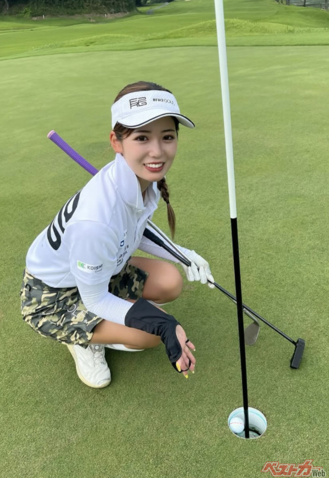 イーグルを記録した(!)際の1枚(ご本人のインスタグラムより)。好きなゴルフコースは「グリーンが速いコース。ラインを読むのが難しく、タッチが微妙なところにワクワクします」
