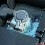 バッテリー端子に白い粉が大量に付着している状態(RYU TAKAHASHI@Adobe Stock)