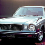 ジャガーXJを彷彿とさせる英国車風デザインの3代目コロナマークII。トヨタオート店では兄弟車、チェイサーが販売された。「堅気になろう三代目」という開発コンセプトは意味がわからない……。
