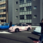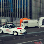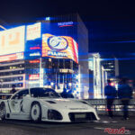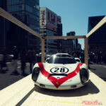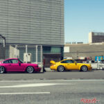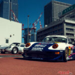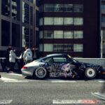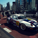 Luft Tokyoが何より素晴らしかったのは、見せ方のセンスだ。 単にモデルごとに整列させるのではない。西銀座の料金所跡、あの見慣れた看板に沿って、ストリート仕様の911が2列に並べられていた。その姿は、人気漫画「湾岸ミッドナイト」で読み耽った、あのストイックな世界観そのものだ。
