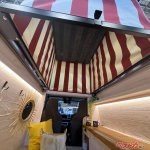 人気YouTuberチキチキバンバンの2人組、ちもさん、まりこさんが内装のデザインを担当。1~2人乗りでキャンプの相棒として使うことを想定し、運転席と後ろが行き来できるウォークスルーやシンク、たくさんの収納スペースをリクエスト。