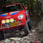 森本さんは空気圧をグンと落とし、本格四駆トライアル走行を始めてしまった。木の枝がボディーにガンガン当たってもお構いなし。ジムニーでなければ走破できないような険しい道をどんどん突き進んでいく。