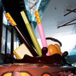 実際にグリコワゴンの製作を担当したシバックス横浜開発センター長の西岡大輔氏によると、「実物比でキャラメルが24倍でビスコとアーモンドが20倍、ポッキーは16倍、ジャイアンコーンは8倍と大きさを変えています。リアルに見えるようにこだわりを持って製作しました」という。