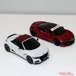 このようにMINI-Zレーサーとしても、注目の一台に仕上がっている。そのポテンシャルの高さは、軽自動車ながら、本格スポーツカーを目指した実車のS660とも共通する胸アツポイントといえよう。実際に、デモランでも、S660は、俊敏かつ華麗な走りを見せてくれた。ラジコン初心者の筆者も遊んでみたが、コースを走らせるのは、慣れるまで操作が難しい。ただオプションのジャイロユニットを購入し、装備すると直進性が高まるそう。実際に、ジャイロ付きのNSXを走らせてみたが、ジャイロのおかげで壁にぶつかる回数は劇的に減った。