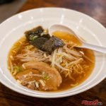 一方、編集部Eが注文した醤油ラーメンがこれ。澄んだスープにチャーシューとモヤシ、海苔、ネギの、いかにも中華屋のラーメン。編集Eもスープの余韻とともに夢中で炒飯を頬張っていた。