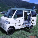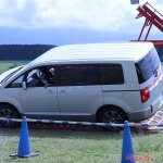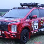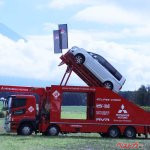 【4WD登坂キット同乗体験会】三菱自動車の定番にして大人気イベントが、トラックに設置された登坂路を走る同乗体験会だ。最大斜度がなんと45度もある急坂を、デリカD:5が登っていく様は圧巻である。増岡浩総監督の指揮を執り、開催された。
