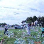 【シャボン玉ショー】ステージ会場の横では、幻想的なシャボン玉ショーが買い刺された。たくさんのシャボン玉をいっぺんに作ることができる特製の器具によって、広場を埋め尽くすばかりのシャボン玉が展開された。