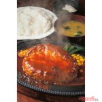 ハンバーグも昔からあるメニューで、まったりとしたデミグラスと黒胡椒を効かせたピリッとスパイシーな合挽きパテが抜群のコンビネーション。付け合わせが野菜炒めってところもほっこりする。