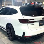 大阪オートメッセのスバルブースに出現したのが、プローバが手掛けるレイバックのカスタマイズモデル。ツヤなしのホワイトでラッピングされたそのボディはレヴォーグよりボリューミーなフロント周りを強調する。