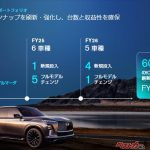 中期経営計画を発表するプレゼン資料のなかで、ICE(内燃機関車)モデルの発表もあった。2024年度に登場予定のモデルとして、すでに発表されているインフィニティQX80(2024年3月20日発表)のほか、新型キックス(2024年3月25日発表)、新型ムラーノ、新型パトロール/アルマーダと明記されている。走行シーンの映像では明らかにパトロールと思われるクルマが写っていた。