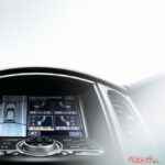 本木目フィニッシャーには高級素材であるカーリーメイプルを採用し、表面はヴァイオリンのようなグラデーション塗装を施すことで華やかな仕立てとし、スカイラインらしいスポーティな雰囲気のなかに漂うエレガンスで独特の世界観を主張していた。
