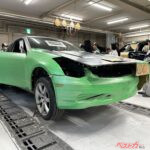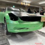 ただリアゲートがステージアはかなりスパッと切ったもので、フェアレディのボリューミーなイメージとはちょっと合わない。そうなるとステージアのフレームを切ることとなり、車検取得が前提の京都校は「ひずみ試験」に挑むことになった。