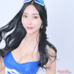 昨年(2023年)に続き、ウェッズスポーツギャルズの衣装に袖を通した“まこちー”。艶やかな黒髪ロングで、オトナの魅力あふれるコスチューム姿がまぶしいですっ!