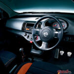車内は基本的なデザインこそ標準車を踏襲しているが、SR12専用アイテムでスポーツモデルらしい作りとしていた。専用設計のスポーツシートのほか、オレンジステッチを施した専用ディンプル付本革巻ステアリング、本革巻きシフトノブ、操作性の向上を狙って採用した専用アルミペダルなどのアイテムによって実現した室内は、本格スポーツカーにふさわしいものと言っていい。オーナーは特別なマーチに乗っているという満足感が味わえた。