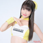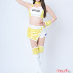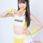 レースクイーン3年目の今年はaprのビビッドなイエローの衣装に袖を通した“ありー”。キラキラ輝く元気な笑顔と、吸い込まれるようなヘーゼルアイのギャップからもう目が離せませんっ!