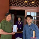レッキ前に蓼科山聖光寺で交通安全祈願。中央は松久保秀胤住職