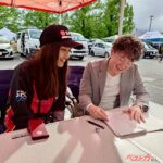 聞けば小学校の先生の経験もあるとか。ペースノートの作り方&読み方やロードブック(ルート案内)の見方、はたまた生まれて初めて座るというフルバケットシート+6点式シートベルトの装着方法まで懇切丁寧に楽しく教えている。