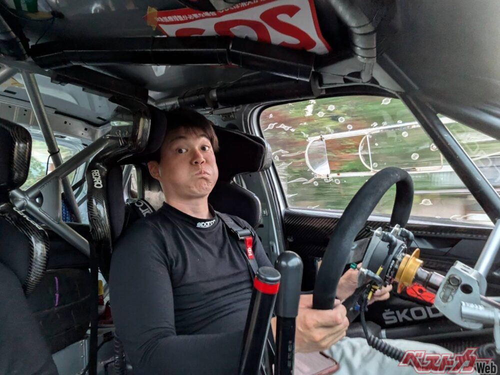 絶好のラリー日和を迎えたモントレーラリー初日は堂々の2位。だが、ヒロキ選手は悔しさを滲ませる。それもそのはず、首位コバライネン選手との差は1秒もないのですから!!