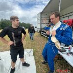 各々準備し、乗り込んでいくオーナー達。しかし何故か最後の最後まで徹夜で仕上げたLADAオーナーだけが来ていません。あれ??と思い連絡してみると、「遅れているから車両が大丈夫か走行して確認しといて!」と言われ友人がいきなりレーシングスーツに着替えはじめました。