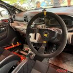 沖縄で行われたラリーチャレンジ会場で初めてミライース(赤い車両)を見た瞬間、直感的にポテンシャルを感じ、その場で「私にも1台作ってください!」とオーダー。80万円程度の中古車をベースに作った車両は、2024年12月のラリーチャレンジ最終戦豊田に間に合った。開発中の部品もあるため正式な頒価でこそないものの、おおよそベース車両+200万円である。