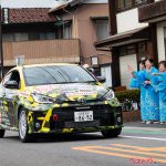 今回の目玉のひとつとして告知されていたのが、ヤリスWRC(2022試験車両)のデモ走行だ。岡崎市、乙川の河川敷に用意されたSS3/4”Okazaki City”とデモランステージは快晴の土曜日。マスク姿の人々が、地元ではおなじみオカザえもんの登場や武将隊のステージを堪能した。