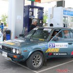 竹平さんがエントリーしているクラスは近年大人気となっている旧車クラス。1970年代にラリーで活躍した日本車が多い。初代ランサーや、サファリで大暴れしたバイオレット、210サニー、27トレノ、70カローラも3台出ている。いずれも外観こそノーマルながら中身は少し若返っている(笑)。竹平さんが乗ったカローラは、エンジンとミッションがアルテッツァ。RSの2Lの4気筒です。