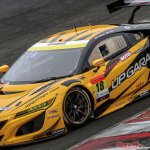 レース前半では8号車と17号車が快調に飛ばし、17号車はピット作業の速さで8号車をアンダーカット。このNSX2台と、3番手を走る39号車のSupraがトップ3を形成した。異変が起こったのは37周目、100号車が56号車と交錯してクラッシュ。リヤセクションが無くなるほどの事故だったがドライバーの山本尚貴は大事には至らなかったとのこと。