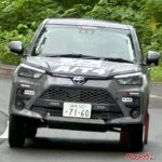 ちっちゃなSUVが来たなと思ったらトヨタのライズ。ラリーレイドやパイクスピークで活躍した塙郁夫選手のドライビングで、すばしっこく駆け抜けていった。