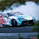 山中真生(やまなか・まお)選手が駆るマシンを見ていると耳元でエギゾーストから排出される2JZの生き生きとした咆哮が聞こえ、そしてタイヤスモークと匂いが身を包む。本当に五感をくすぐるカテゴリーだなと感じる。