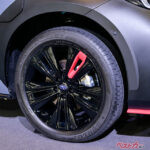 オートサロン2024のコンセプトモデルは、STIモデルらしいチェリーレッドのアンダースポイラーやルーフエンドスポイラーなどで、スポーティな走りのイメージを演出。中身のチューニング内容については公表されていないが、足回りを中心に開発が行われているという情報がある。