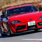 続いてGRスープラ。GR86と同じく次世代2Lエンジンを搭載するFRスポーツだが、こちらは2LターボのHEV。8速もしくは10速のATを設定し、強度が高く軽量なカーボンプロペラシャフトを採用。