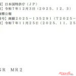 「J-PlatPat」の記録によれば、「GR MR2」という商標の出願日は2025年11月25日。ほぼ1週間前のことだ。この後商標は特許庁の審査を経て、登録されることになるが、早ければ2か月後の2026年1月には商標登録が完了することになる。21世紀にMR2の名が復活するとは感無量だ。