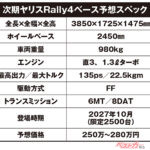 ●次期トヨタ ヤリスRally4ベース予想スペック