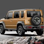 ちなみに、意匠登録されたジムニーの左サイドミラーの下に補助ミラーがついており、これは日本の法規対応になるが、インド仕様のジムニー5ドアには装着されていないパーツだ。