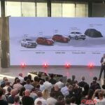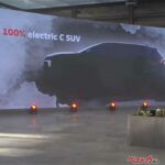 脇に「New 100% electric C SUV」と書いてあるから、おそらくCセグメント(ゴルフやカローラサイズ)の電動SUVなのだろうが、全体的にスクエアで堂々した印象を受ける。はたしてこれはなんだろうか。